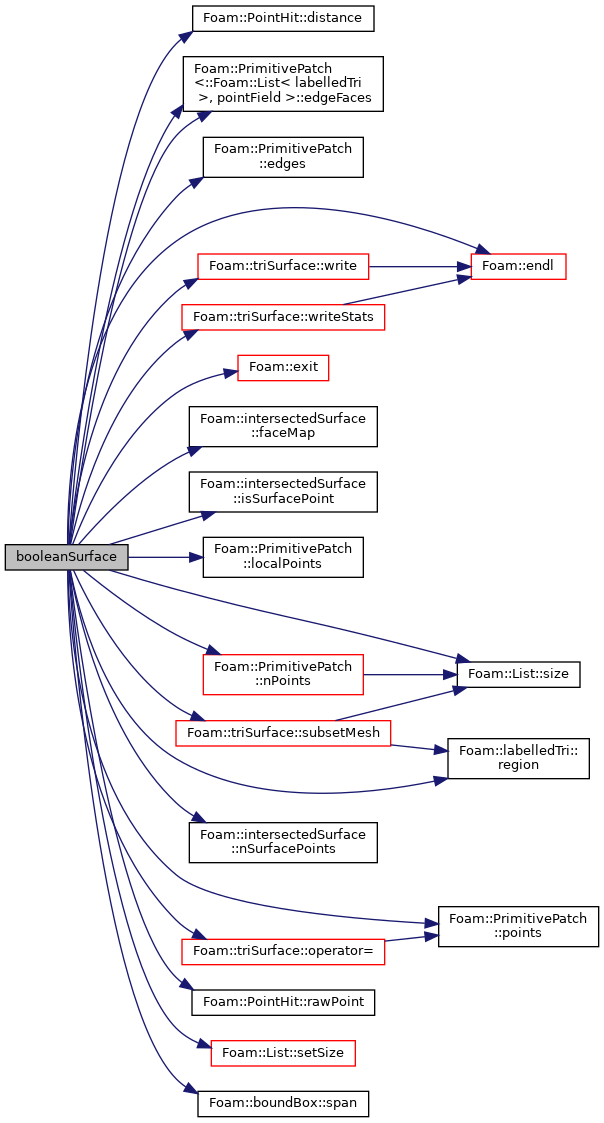 References booleanSurface::ALL, PointHit< Point >::distance(), PrimitivePatch<::Foam::List< labelledTri >, pointField >::edgeFaces(), PrimitivePatch< FaceList, PointField >::edgeFaces(), PrimitivePatch< FaceList, PointField >::edges(), Foam::endl(), Foam::exit(), intersectedSurface::faceMap(), Foam::FatalError, FatalErrorInFunction, forAll, booleanSurface::INTERSECTION, intersectedSurface::isSurfacePoint(), PrimitivePatch< FaceList, PointField >::localPoints(), Foam::nl, PrimitivePatch< FaceList, PointField >::nPoints(), intersectedSurface::nSurfacePoints(), triSurface::operator=(), PrimitivePatch< FaceList, PointField >::points(), Foam::Pout, PointHit< Point >::rawPoint(), labelledTri::region(), List< T >::setSize(), List< T >::size(), boundBox::span(), triSurface::subsetMesh(), booleanSurface::UNION, WarningInFunction, triSurface::write(), triSurface::writeStats(), and Foam::Zero.