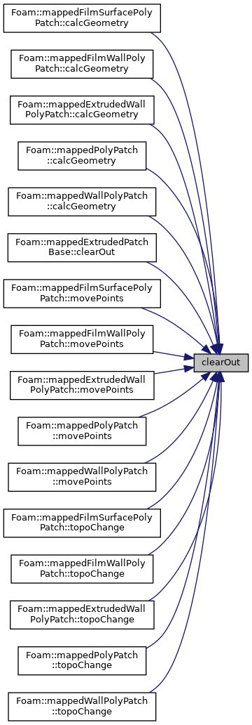 Referenced by mappedFilmSurfacePolyPatch::calcGeometry(), mappedFilmWallPolyPatch::calcGeometry(), mappedExtrudedWallPolyPatch::calcGeometry(), mappedPolyPatch::calcGeometry(), mappedWallPolyPatch::calcGeometry(), mappedExtrudedPatchBase::clearOut(), mappedFilmSurfacePolyPatch::movePoints(), mappedFilmWallPolyPatch::movePoints(), mappedExtrudedWallPolyPatch::movePoints(), mappedPolyPatch::movePoints(), mappedWallPolyPatch::movePoints(), mappedFilmSurfacePolyPatch::topoChange(), mappedFilmWallPolyPatch::topoChange(), mappedExtrudedWallPolyPatch::topoChange(), mappedPolyPatch::topoChange(), and mappedWallPolyPatch::topoChange().