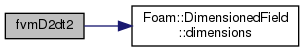 References dimensioned< Type >::dimensions(), DimensionedField< Type, GeoMesh >::dimensions(), Foam::dimTime, Foam::dimVol, and steadyStateD2dt2Scheme< Type >::fvmD2dt2().