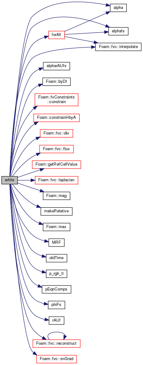 References alpha(), alphafs(), alpharAUfs(), Foam::byDt(), fvConstraints::constrain(), Foam::constrainHbyA(), Foam::dimDensity, Foam::dimFlux, Foam::dimForce, Foam::dimVelocity, Foam::fvc::div(), fluid, Foam::fvc::flux(), forAll(), fvConstraints, g, Foam::getRefCellValue(), gh, ghf, Foam::fvc::interpolate(), Foam::fvc::laplacian(), Foam::mag(), makeRelative(), Foam::max(), mesh, MRF(), oldTime(), p, p_rgh, p_rgh_0(), pEqnComps(), phasei, phases, phi, phiFs(), phiHbyA, pimple, pressureReference, rAUf(), rAUs, Foam::fvc::reconstruct(), rho, Foam::fvc::snGrad(), and UEqns.
