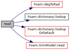 References Foam::degToRad(), dict, dictionary::lookup(), dictionary::lookupOrDefault(), and trimModel::read().