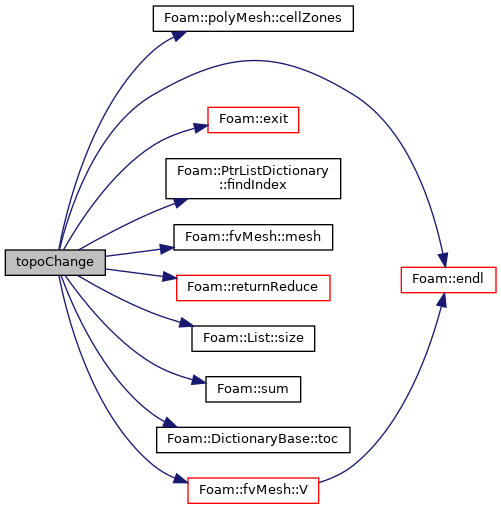 References polyMesh::cellZones(), Foam::endl(), Foam::exit(), Foam::FatalError, FatalErrorInFunction, PtrListDictionary< T >::findIndex(), forAll, Foam::Info, fvMesh::mesh(), mesh, Foam::nl, Foam::returnReduce(), List< T >::size(), Foam::sum(), DictionaryBase< IDLListType, T >::toc(), fvMesh::V(), and WarningInFunction.