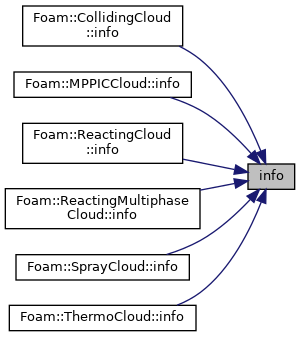 Referenced by CollidingCloud< CloudType >::info(), MPPICCloud< CloudType >::info(), ReactingCloud< CloudType >::info(), ReactingMultiphaseCloud< CloudType >::info(), SprayCloud< CloudType >::info(), and ThermoCloud< CloudType >::info().