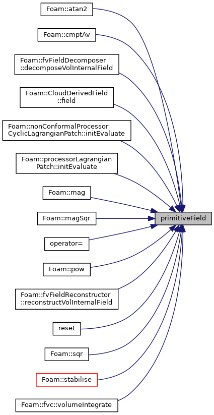 Referenced by Foam::atan2(), Foam::cmptAv(), fvFieldDecomposer::decomposeVolInternalField(), CloudDerivedField< Type >::field(), nonConformalProcessorCyclicLagrangianPatch::initEvaluate(), processorLagrangianPatch::initEvaluate(), Foam::mag(), Foam::magSqr(), DimensionedField< Type, GeoMesh, PrimitiveField >::operator=(), Foam::pow(), fvFieldReconstructor::reconstructVolInternalField(), DimensionedField< Type, GeoMesh, PrimitiveField >::reset(), Foam::sqr(), Foam::stabilise(), and Foam::fvc::volumeIntegrate().
