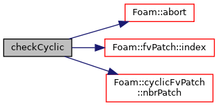 References Foam::abort(), Foam::FatalError, FatalErrorInFunction, forAll, fvPatch::index(), and cyclicFvPatch::nbrPatch().