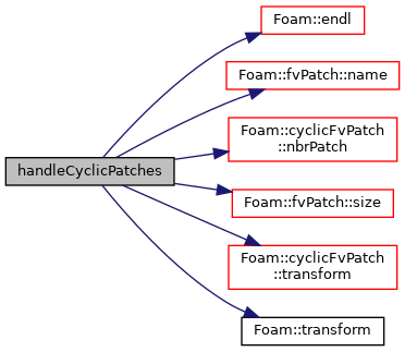 References Foam::endl(), forAll, fvPatch::name(), cyclicFvPatch::nbrPatch(), patchi, Foam::Pout, fvPatch::size(), cyclicFvPatch::transform(), and Foam::transform().