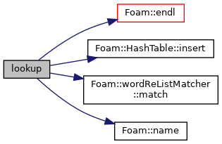 References Foam::endl(), forAllConstIter, InfoInFunction, HashTable< T, Key, Hash >::insert(), wordReListMatcher::match(), and Foam::name().