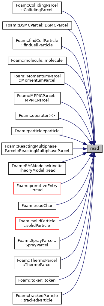 Referenced by CollidingParcel< ParcelType >::CollidingParcel(), DSMCParcel< ParcelType >::DSMCParcel(), findCellParticle::findCellParticle(), molecule::molecule(), MomentumParcel< ParcelType >::MomentumParcel(), MPPICParcel< ParcelType >::MPPICParcel(), Foam::operator>>(), particle::particle(), ReactingMultiphaseParcel< ParcelType >::ReactingMultiphaseParcel(), kineticTheoryModel::read(), primitiveEntry::read(), Foam::readChar(), solidParticle::solidParticle(), SprayParcel< ParcelType >::SprayParcel(), ThermoParcel< ParcelType >::ThermoParcel(), token::token(), and trackedParticle::trackedParticle().