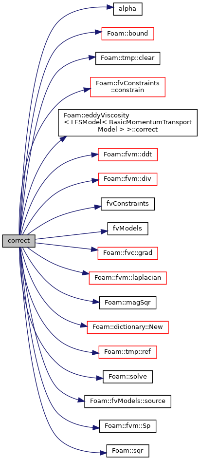 References alpha(), Foam::bound(), tmp< T >::clear(), fvConstraints::constrain(), eddyViscosity< LESModel< BasicMomentumTransportModel > >::correct(), Foam::fvm::ddt(), Foam::fvm::div(), fvConstraints(), fvModels(), Foam::fvc::grad(), Foam::fvm::laplacian(), Foam::magSqr(), dictionary::New(), tmp< T >::ref(), rho, Foam::solve(), fvModels::source(), Foam::fvm::Sp(), Foam::sqr(), and U.