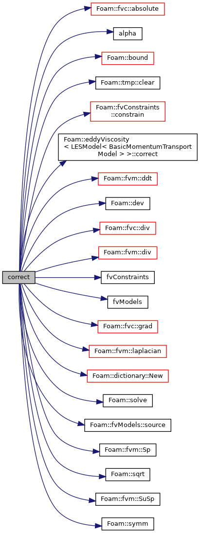 References Foam::fvc::absolute(), alpha(), Foam::bound(), tmp< T >::clear(), fvConstraints::constrain(), eddyViscosity< LESModel< BasicMomentumTransportModel > >::correct(), Foam::saturationModels::D, Foam::fvm::ddt(), delta, Foam::dev(), Foam::fvc::div(), Foam::fvm::div(), fvConstraints(), fvModels(), Foam::constant::universal::G, Foam::fvc::grad(), Foam::fvm::laplacian(), dictionary::New(), nut, rho, Foam::solve(), fvModels::source(), Foam::fvm::Sp(), Foam::sqrt(), Foam::fvm::SuSp(), Foam::symm(), and U.