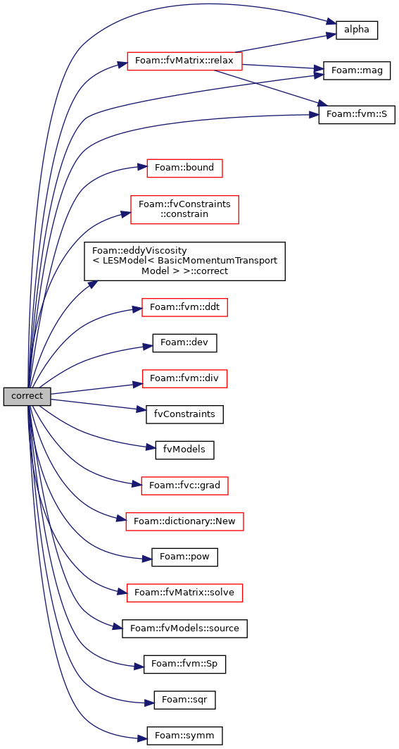 References alpha(), Foam::bound(), fvConstraints::constrain(), eddyViscosity< LESModel< BasicMomentumTransportModel > >::correct(), Foam::fvm::ddt(), delta, Foam::dev(), Foam::fvm::div(), fvConstraints(), fvModels(), Foam::fvc::grad(), M, Foam::mag(), dictionary::New(), Foam::pow(), fvMatrix< Type >::relax(), rho, Foam::fvm::S(), fvMatrix< Type >::solve(), fvModels::source(), Foam::fvm::Sp(), Foam::sqr(), Foam::symm(), and U.