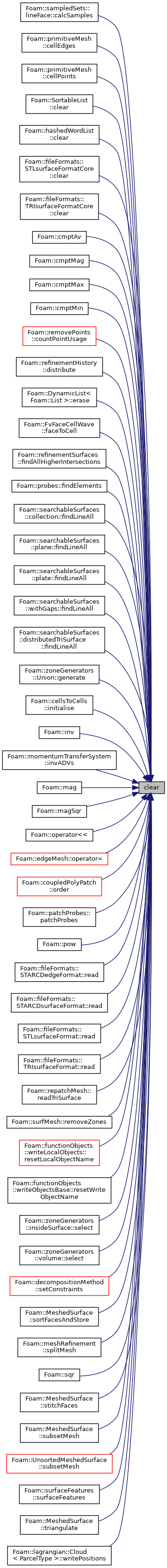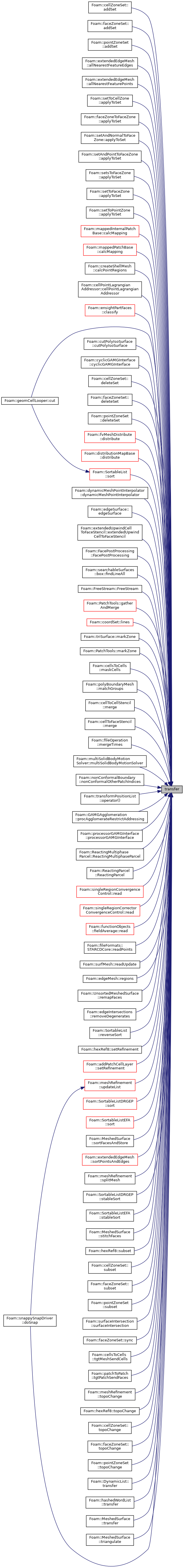 Referenced by lineFace::calcSamples(), primitiveMesh::cellEdges(), primitiveMesh::cellPoints(), SortableList< T >::clear(), hashedWordList::clear(), STLsurfaceFormatCore::clear(), TRIsurfaceFormatCore::clear(), Foam::cmptAv(), Foam::cmptMag(), Foam::cmptMax(), Foam::cmptMin(), removePoints::countPointUsage(), refinementHistory::distribute(), DynamicList< Foam::List >::erase(), FvFaceCellWave< Type, TrackingData >::faceToCell(), refinementSurfaces::findAllHigherIntersections(), probes::findElements(), collection::findLineAll(), plane::findLineAll(), plate::findLineAll(), withGaps::findLineAll(), distributedTriSurface::findLineAll(), Union::generate(), cellsToCells::initialise(), Foam::inv(), momentumTransferSystem::invADVs(), Foam::mag(), Foam::magSqr(), Foam::operator<<(), edgeMesh::operator=(), coupledPolyPatch::order(), patchProbes::patchProbes(), Foam::pow(), STARCDedgeFormat::read(), STARCDsurfaceFormat< Face >::read(), STLsurfaceFormat< Face >::read(), TRIsurfaceFormat< Face >::read(), repatchMesh::readTriSurface(), surfMesh::removeZones(), writeLocalObjects::resetLocalObjectName(), writeObjectsBase::resetWriteObjectName(), insideSurface::select(), volume::select(), decompositionMethod::setConstraints(), MeshedSurface< Face >::sortFacesAndStore(), meshRefinement::splitMesh(), Foam::sqr(), MeshedSurface< Face >::stitchFaces(), MeshedSurface< Face >::subsetMesh(), UnsortedMeshedSurface< Face >::subsetMesh(), surfaceFeatures::surfaceFeatures(), MeshedSurface< Face >::triangulate(), and Cloud< ParcelType >::writePositions().