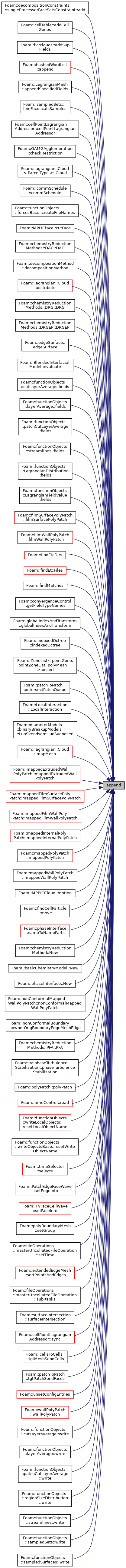 Referenced by singleProcessorFaceSetsConstraint::add(), cellTable::addCellZones(), clouds::addSupFields(), hashedWordList::append(), LagrangianMesh::appendSpecifiedFields(), lineFace::calcSamples(), cellPointLagrangianAddressor::cellPointLagrangianAddressor(), GAMGAgglomeration::checkRestriction(), Cloud< ParcelType >::Cloud(), commSchedule::commSchedule(), forcesBase::createFileNames(), MPLICface::cutFace(), DAC< ThermoType >::DAC(), decompositionMethod::decompositionMethod(), Cloud< ParticleType >::distribute(), DRG< ThermoType >::DRG(), DRGEP< ThermoType >::DRGEP(), edgeSurface::edgeSurface(), BlendedInterfacialModel< ModelType >::evaluate(), cutLayerAverage::fields(), layerAverage::fields(), patchCutLayerAverage::fields(), streamlines::fields(), LagrangianDistribution::fields(), LagrangianFieldValue::fields(), filmSurfacePolyPatch::filmSurfacePolyPatch(), filmWallPolyPatch::filmWallPolyPatch(), Foam::findEtcDirs(), Foam::findEtcFiles(), Foam::findMatches(), convergenceControl::getFieldTypeNames(), globalIndexAndTransform::globalIndexAndTransform(), indexedOctree< Type >::indexedOctree(), ZoneList< pointZone, pointZoneList, polyMesh >::insert(), patchToPatch::intersectPatchQueue(), LocalInteraction< CloudType >::LocalInteraction(), LuoSvendsen::LuoSvendsen(), Cloud< ParticleType >::mapMesh(), mappedExtrudedWallPolyPatch::mappedExtrudedWallPolyPatch(), mappedFilmSurfacePolyPatch::mappedFilmSurfacePolyPatch(), mappedFilmWallPolyPatch::mappedFilmWallPolyPatch(), mappedInternalPolyPatch::mappedInternalPolyPatch(), mappedPolyPatch::mappedPolyPatch(), mappedWallPolyPatch::mappedWallPolyPatch(), MPPICCloud< CloudType >::motion(), findCellParticle::move(), phaseInterface::nameToNameParts(), chemistryReductionMethod< ThermoType >::New(), basicChemistryModel::New(), phaseInterface::New(), nonConformalMappedWallPolyPatch::nonConformalMappedWallPolyPatch(), nonConformalBoundary::ownerOrigBoundaryEdgeMeshEdge(), PFA< ThermoType >::PFA(), phaseTurbulenceStabilisation::phaseTurbulenceStabilisation(), polyPatch::polyPatch(), timeControl::read(), writeLocalObjects::resetLocalObjectName(), writeObjectsBase::resetWriteObjectName(), timeSelector::select0(), PatchEdgeFaceWave< PrimitivePatchType, Type, TrackingData >::setEdgeInfo(), FvFaceCellWave< Type, TrackingData >::setFaceInfo(), polyBoundaryMesh::setGroup(), masterUncollatedFileOperation::setTime(), extendedEdgeMesh::sortPointsAndEdges(), masterUncollatedFileOperation::subRanks(), surfaceIntersection::surfaceIntersection(), cellPointLagrangianAddressor::sync(), cellsToCells::tgtMeshSendCells(), patchToPatch::tgtPatchSendFaces(), Foam::unsetConfigEntries(), wallPolyPatch::wallPolyPatch(), cutLayerAverage::write(), layerAverage::write(), patchCutLayerAverage::write(), regionSizeDistribution::write(), streamlines::write(), sampledSets::write(), and sampledSurfaces::write().
