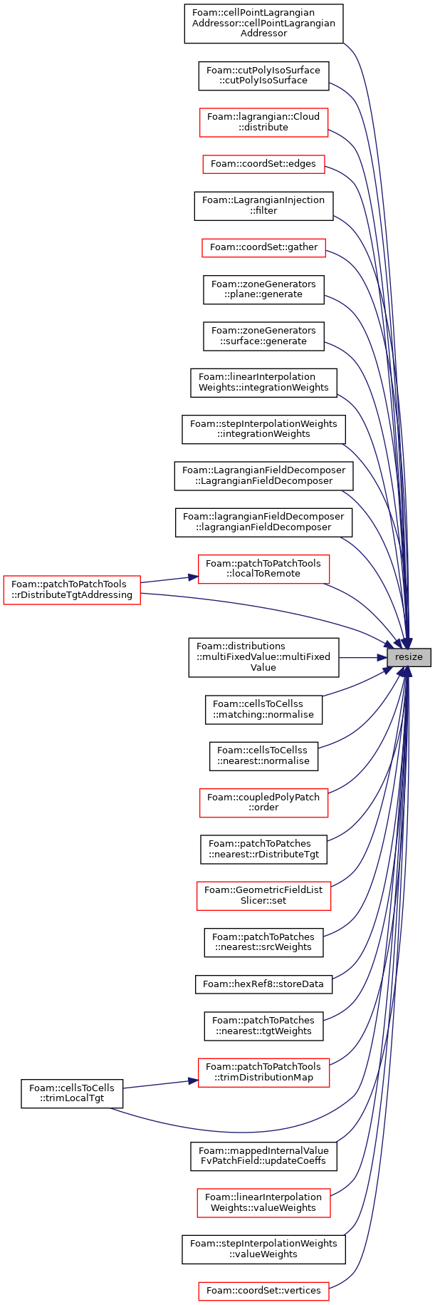 Referenced by cellPointLagrangianAddressor::cellPointLagrangianAddressor(), cutPolyIsoSurface::cutPolyIsoSurface(), Cloud< ParticleType >::distribute(), coordSet::edges(), LagrangianInjection::filter(), coordSet::gather(), plane::generate(), surface::generate(), linearInterpolationWeights::integrationWeights(), stepInterpolationWeights::integrationWeights(), LagrangianFieldDecomposer::LagrangianFieldDecomposer(), lagrangianFieldDecomposer::lagrangianFieldDecomposer(), Foam::patchToPatchTools::localToRemote(), multiFixedValue::multiFixedValue(), matching::normalise(), nearest::normalise(), coupledPolyPatch::order(), nearest::rDistributeTgt(), Foam::patchToPatchTools::rDistributeTgtAddressing(), GeometricFieldListSlicer< Type, GeoMesh >::set(), nearest::srcWeights(), hexRef8::storeData(), nearest::tgtWeights(), Foam::patchToPatchTools::trimDistributionMap(), cellsToCells::trimLocalTgt(), mappedInternalValueFvPatchField< Type >::updateCoeffs(), linearInterpolationWeights::valueWeights(), stepInterpolationWeights::valueWeights(), and coordSet::vertices().