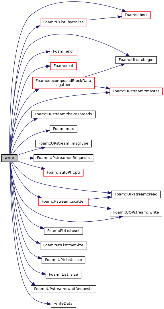 References Foam::abort(), UList< T >::begin(), UList< T >::byteSize(), Foam::endl(), Foam::exit(), Foam::FatalError, FatalErrorInFunction, decomposedBlockData::gather(), UPstream::haveThreads(), UPstream::master(), Foam::max(), UPstream::msgType(), UPstream::nonBlocking, UPstream::nRequests(), string::null, Foam::Pout, autoPtr< T >::ptr(), UIPstream::read(), Pstream::scatter(), PtrList< T >::set(), PtrList< T >::setSize(), UPtrList< T >::size(), List< T >::size(), UPstream::waitRequests(), UOPstream::write(), and writeData().