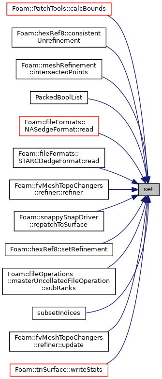 Referenced by PatchTools::calcBounds(), hexRef8::consistentUnrefinement(), meshRefinement::intersectedPoints(), PackedBoolList::PackedBoolList(), NASedgeFormat::read(), STARCDedgeFormat::read(), refiner::refiner(), snappySnapDriver::repatchToSurface(), hexRef8::setRefinement(), masterUncollatedFileOperation::subRanks(), PackedBoolList::subsetIndices(), refiner::update(), and triSurface::writeStats().