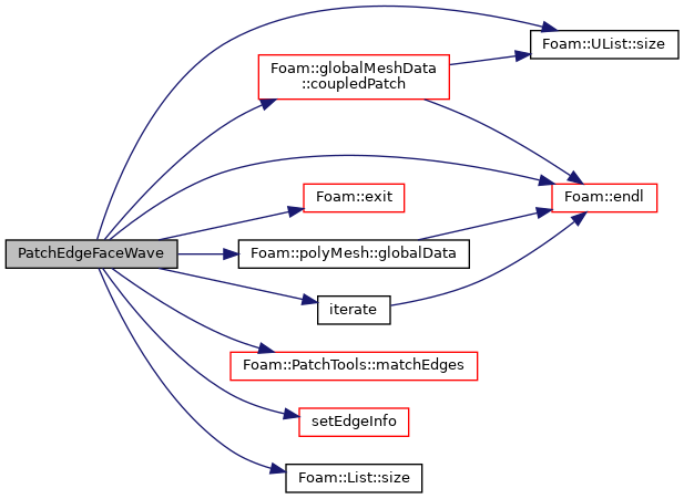 References globalMeshData::coupledPatch(), Foam::endl(), Foam::exit(), Foam::FatalError, FatalErrorInFunction, polyMesh::globalData(), PatchEdgeFaceWave< PrimitivePatchType, Type, TrackingData >::iterate(), PatchTools::matchEdges(), Foam::Pout, PatchEdgeFaceWave< PrimitivePatchType, Type, TrackingData >::setEdgeInfo(), UList< T >::size(), and List< T >::size().