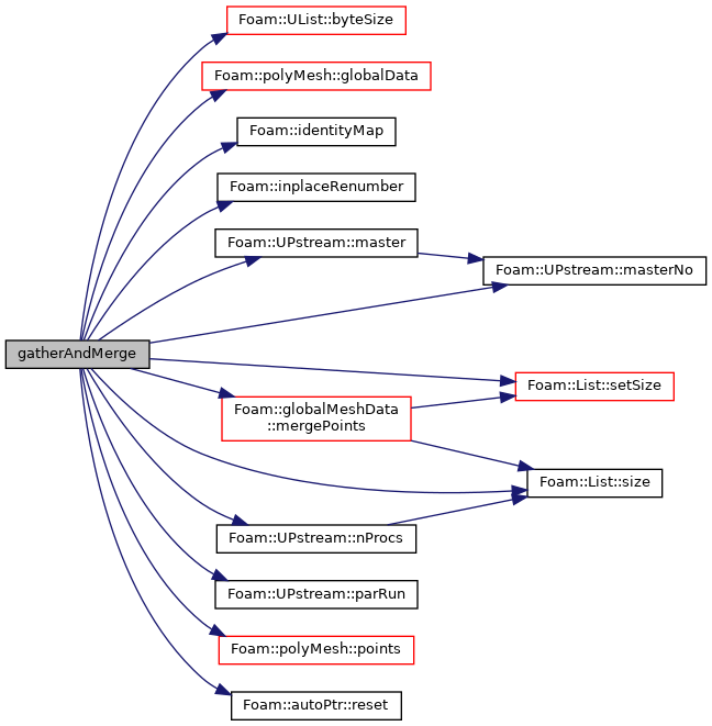 | static void | gatherAndMerge (const polyMesh &mesh, const FaceList &faces, const labelList &meshPoints, const Map< label > &meshPointMap, labelList &pointToGlobal, labelList &uniqueMeshPointLabels, autoPtr< globalIndex > &globalPoints, autoPtr< globalIndex > &globalFaces, List< typename FaceList::value_type > &mergedFaces, pointField &mergedPoints) |
