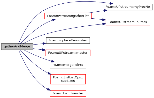 References forAll, Pstream::gatherList(), Foam::inplaceRenumber(), UPstream::master(), Foam::mergePoints(), UPstream::myProcNo(), UPstream::nProcs(), p, Foam::ListListOps::subSizes(), and List< T >::transfer().