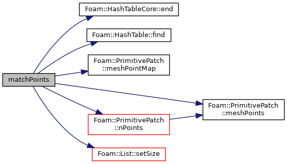 | static void | matchPoints (const PrimitivePatch< FaceList1, PointField1 > &p1, const PrimitivePatch< FaceList2, PointField2 > &p2, labelList &p1PointLabels, labelList &p2PointLabels) |
