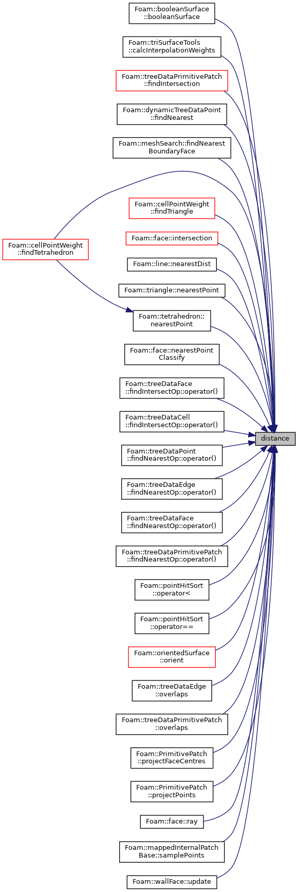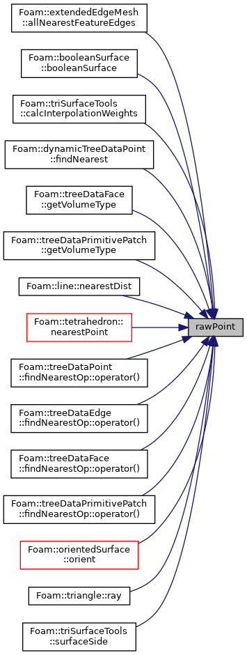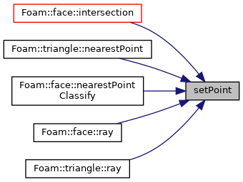 Referenced by booleanSurface::booleanSurface(), triSurfaceTools::calcInterpolationWeights(), treeDataPrimitivePatch< PatchType >::findIntersection(), dynamicTreeDataPoint::findNearest(), meshSearch::findNearestBoundaryFace(), cellPointWeight::findTetrahedron(), cellPointWeight::findTriangle(), face::intersection(), line< Point, PointRef >::nearestDist(), triangle< Point, PointRef >::nearestPoint(), tetrahedron< Point, PointRef >::nearestPoint(), face::nearestPointClassify(), treeDataFace::findIntersectOp::operator()(), treeDataCell::findIntersectOp::operator()(), treeDataPoint::findNearestOp::operator()(), treeDataEdge::findNearestOp::operator()(), treeDataFace::findNearestOp::operator()(), treeDataPrimitivePatch< PatchType >::findNearestOp::operator()(), pointHitSort::operator<(), pointHitSort::operator==(), orientedSurface::orient(), treeDataEdge::overlaps(), treeDataPrimitivePatch< PatchType >::overlaps(), PrimitivePatch< FaceList, PointField >::projectFaceCentres(), PrimitivePatch< FaceList, PointField >::projectPoints(), face::ray(), mappedInternalPatchBase::samplePoints(), and wallFace::update().