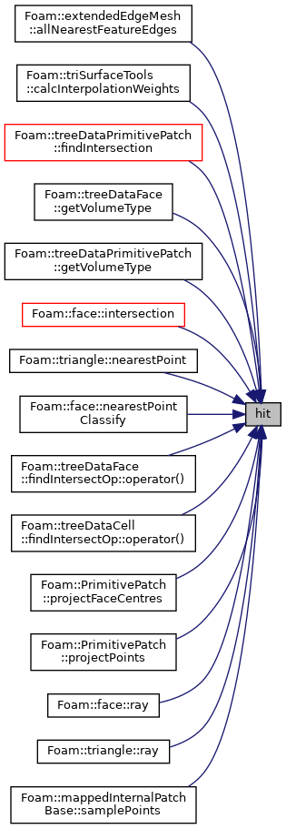 Referenced by extendedEdgeMesh::allNearestFeatureEdges(), triSurfaceTools::calcInterpolationWeights(), treeDataPrimitivePatch< PatchType >::findIntersection(), treeDataFace::getVolumeType(), treeDataPrimitivePatch< PatchType >::getVolumeType(), face::intersection(), triangle< Point, PointRef >::nearestPoint(), face::nearestPointClassify(), treeDataFace::findIntersectOp::operator()(), treeDataCell::findIntersectOp::operator()(), PrimitivePatch< FaceList, PointField >::projectFaceCentres(), PrimitivePatch< FaceList, PointField >::projectPoints(), face::ray(), triangle< Point, PointRef >::ray(), and mappedInternalPatchBase::samplePoints().