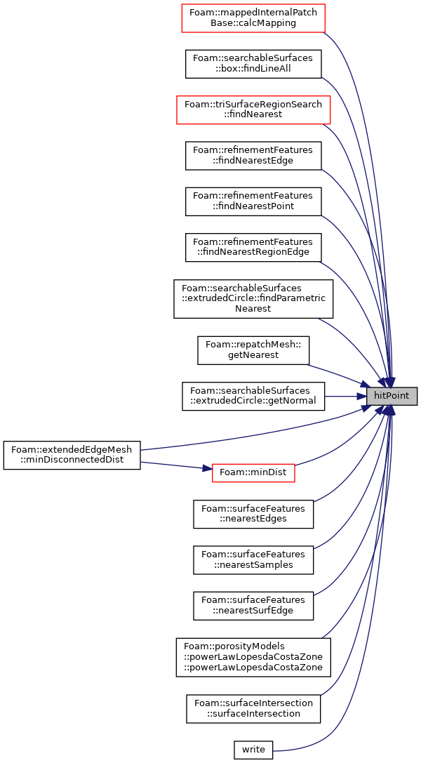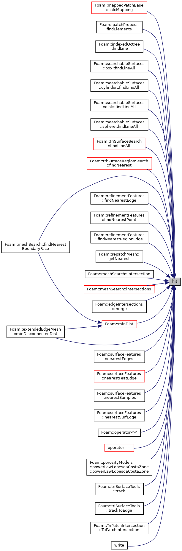 Referenced by mappedPatchBase::calcMapping(), patchProbes::findElements(), indexedOctree< Type >::findLine(), box::findLineAll(), cylinder::findLineAll(), disk::findLineAll(), sphere::findLineAll(), triSurfaceSearch::findLineAll(), triSurfaceRegionSearch::findNearest(), meshSearch::findNearestBoundaryFace(), refinementFeatures::findNearestEdge(), refinementFeatures::findNearestPoint(), refinementFeatures::findNearestRegionEdge(), repatchMesh::getNearest(), meshSearch::intersection(), meshSearch::intersections(), edgeIntersections::merge(), extendedEdgeMesh::minDisconnectedDist(), Foam::minDist(), surfaceFeatures::nearestEdges(), surfaceFeatures::nearestFeatEdge(), surfaceFeatures::nearestSamples(), surfaceFeatures::nearestSurfEdge(), Foam::operator<<(), PointIndexHit< Point >::operator==(), powerLawLopesdaCostaZone::powerLawLopesdaCostaZone(), triSurfaceTools::track(), triSurfaceTools::trackToEdge(), TriPatchIntersection< SrcPatchType, TgtPatchType >::TriPatchIntersection(), and PointIndexHit< Point >::write().