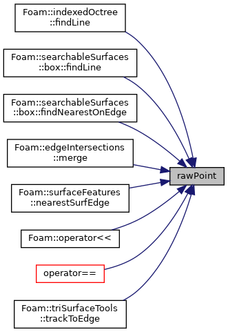 Referenced by indexedOctree< Type >::findLine(), box::findLine(), box::findNearestOnEdge(), edgeIntersections::merge(), surfaceFeatures::nearestSurfEdge(), Foam::operator<<(), PointIndexHit< Point >::operator==(), and triSurfaceTools::trackToEdge().