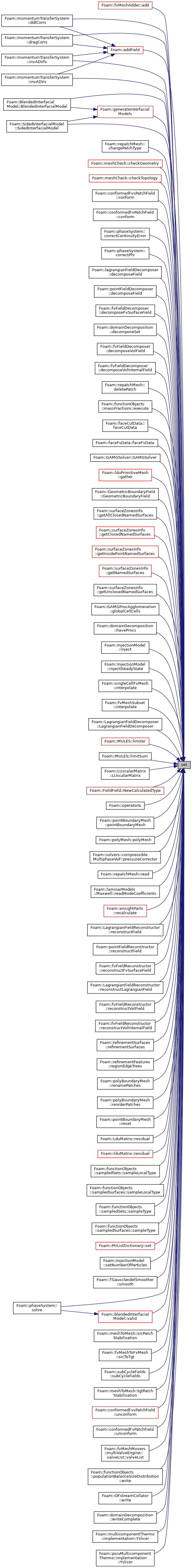Referenced by fvMeshAdder::add(), Foam::addField(), BlendedInterfacialModel< ModelType >::BlendedInterfacialModel(), repatchMesh::changePatchType(), Foam::meshCheck::checkGeometry(), Foam::meshCheck::checkTopology(), conformedFvsPatchField< Type >::conform(), conformedFvPatchField< Type >::conform(), phaseSystem::correctContinuityError(), phaseSystem::correctPhi(), momentumTransferSystem::ddtCorrs(), lagrangianFieldDecomposer::decomposeField(), pointFieldDecomposer::decomposeField(), fvFieldDecomposer::decomposeFvSurfaceField(), domainDecomposition::decomposeSet(), fvFieldDecomposer::decomposeVolField(), fvFieldDecomposer::decomposeVolInternalField(), repatchMesh::deletePatch(), momentumTransferSystem::dragCorrs(), massFractions::execute(), faceCutData::faceCutData(), faceFsData::faceFsData(), GAMGSolver::GAMGSolver(), lduPrimitiveMesh::gather(), Foam::generateInterfacialModels(), GeometricBoundaryField< Type, GeoMesh, PrimitiveField >::GeometricBoundaryField(), surfaceZonesInfo::getAllClosedNamedSurfaces(), surfaceZonesInfo::getClosedNamedSurfaces(), surfaceZonesInfo::getInsidePointNamedSurfaces(), surfaceZonesInfo::getNamedSurfaces(), surfaceZonesInfo::getUnclosedNamedSurfaces(), GAMGProcAgglomeration::globalCellCells(), domainDecomposition::haveProcs(), InjectionModel< CloudType >::inject(), InjectionModel< CloudType >::injectSteadyState(), singleCellFvMesh::interpolate(), fvMeshSubset::interpolate(), momentumTransferSystem::invADVfs(), momentumTransferSystem::invADVs(), LagrangianFieldDecomposer::LagrangianFieldDecomposer(), Foam::MULES::limiter(), Foam::MULES::limitSum(), LUscalarMatrix::LUscalarMatrix(), FieldField< Field, Type >::NewCalculatedType(), Foam::operator&(), pointBoundaryMesh::pointBoundaryMesh(), polyMesh::polyMesh(), compressibleMultiphaseVoF::pressureCorrector(), repatchMesh::read(), Maxwell< BasicMomentumTransportModel >::readModeCoefficients(), ensightParts::recalculate(), LagrangianFieldReconstructor::reconstructField(), pointFieldReconstructor::reconstructField(), fvFieldReconstructor::reconstructFvSurfaceField(), LagrangianFieldReconstructor::reconstructLagrangianField(), fvFieldReconstructor::reconstructVolField(), fvFieldReconstructor::reconstructVolInternalField(), refinementSurfaces::refinementSurfaces(), refinementFeatures::regionEdgeTrees(), polyBoundaryMesh::renamePatches(), polyBoundaryMesh::reorderPatches(), pointBoundaryMesh::reset(), LduMatrix< Type, DType, LUType >::residual(), lduMatrix::residual(), sampledSets::sampleLocalType(), sampledSurfaces::sampleLocalType(), sampledSets::sampleType(), sampledSurfaces::sampleType(), PtrListDictionary< T >::set(), InjectionModel< CloudType >::setNumberOfParticles(), SidedInterfacialModel< ModelType >::SidedInterfacialModel(), TGaussSeidelSmoother< Type, DType, LUType >::smooth(), phaseSystem::solve(), meshToMesh::srcPatchStabilisation(), fvMeshToFvMesh::srcToTgt(), subCycleFields< GeometricField >::subCycleFields(), meshToMesh::tgtPatchStabilisation(), conformedFvsPatchField< Type >::unconform(), conformedFvPatchField< Type >::unconform(), Foam::blendedInterfacialModel::valid(), multiValveEngine::valveList::valveList(), populationBalanceSizeDistribution::write(), OFstreamCollator::write(), domainDecomposition::writeComplete(), multicomponentThermo::implementation::Yslicer(), and psiuMulticomponentThermo::implementation::Yslicer().