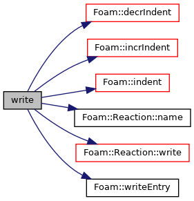 References Foam::decrIndent(), forAll, Foam::incrIndent(), Foam::indent(), Reaction< ThermoType >::name(), Foam::nl, Reaction< ThermoType >::write(), and Foam::writeEntry().