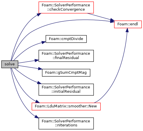References SolverPerformance< Type >::checkConvergence(), Foam::cmptDivide(), Foam::endl(), SolverPerformance< Type >::finalResidual(), Foam::gSumCmptMag(), Foam::Info, SolverPerformance< Type >::initialResidual(), LduMatrix< Type, DType, LUType >::smoother::New(), SolverPerformance< Type >::nIterations(), psi, and Foam::Zero.