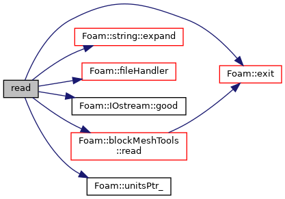 References Foam::exit(), string::expand(), Foam::FatalIOError, FatalIOErrorInFunction, Foam::fileHandler(), IOstream::good(), Foam::nl, Foam::blockMeshTools::read(), and Foam::unitsPtr_().