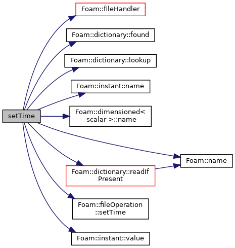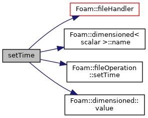 References Foam::fileHandler(), dimensioned< scalar >::name(), fileOperation::setTime(), and dimensioned< Type >::value().