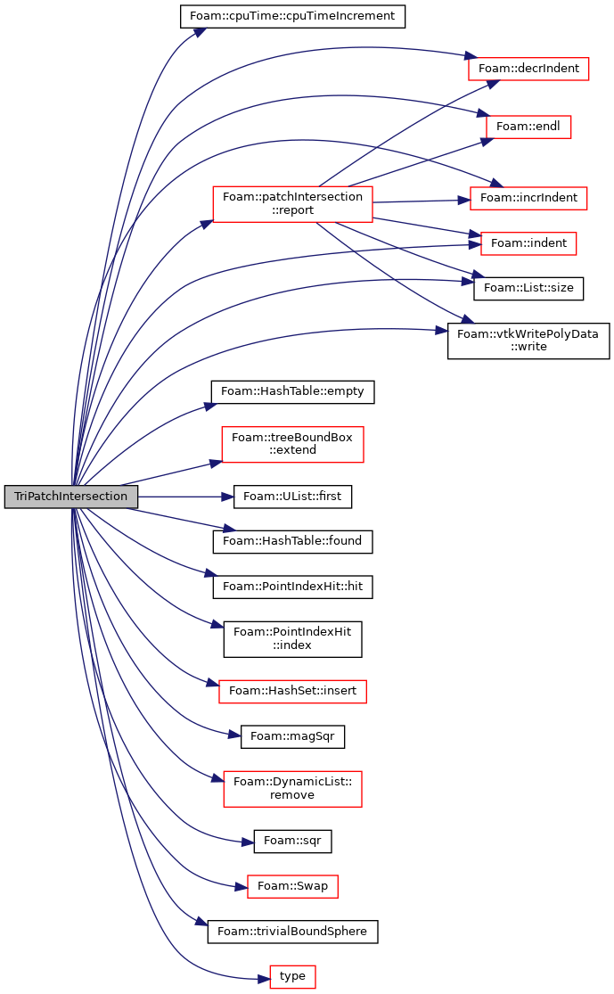 References cpuTime::cpuTimeIncrement(), Foam::decrIndent(), HashTable< T, Key, Hash >::empty(), Foam::endl(), treeBoundBox::extend(), patchIntersection::faces_, UList< T >::first(), forAll, forAllConstIter, HashTable< T, Key, Hash >::found(), PointIndexHit< Point >::hit(), Foam::incrIndent(), Foam::indent(), PointIndexHit< Point >::index(), Foam::Info, HashSet< Key, Hash >::insert(), Foam::magSqr(), patchIntersection::points_, patchIntersection::pointSrcPoints_, patchIntersection::pointTgtEdges_, patchIntersection::pointTgtFaces_, patchIntersection::pointTgtPoints_, DynamicList< T, SizeInc, SizeMult, SizeDiv >::remove(), patchIntersection::report(), List< T >::size(), Foam::sqr(), PatchIntersection< SrcPatchType, TgtPatchType >::srcPatch_, Foam::Swap(), PatchIntersection< SrcPatchType, TgtPatchType >::tgtPatch_, Foam::trivialBoundSphere(), TriPatchIntersection< SrcPatchType, TgtPatchType >::type(), and Foam::vtkWritePolyData::write().