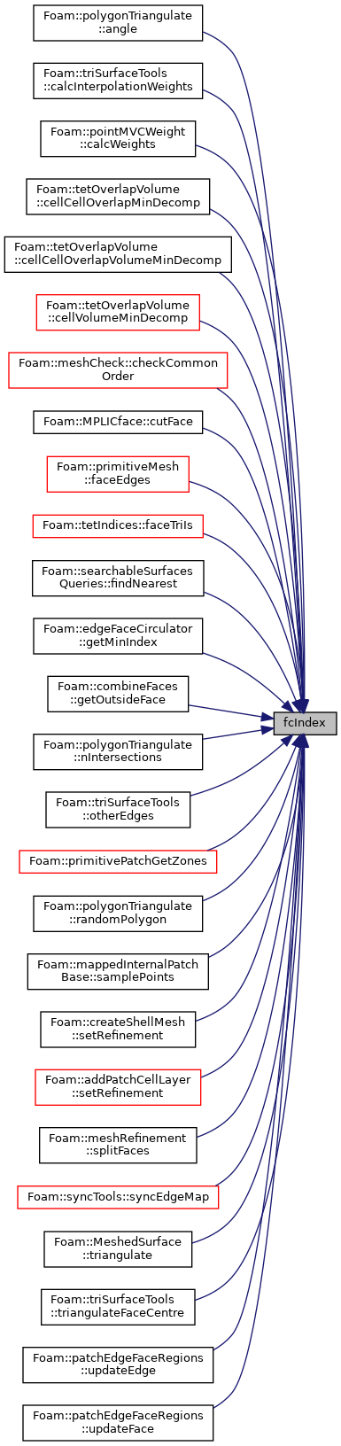 Referenced by polygonTriangulate::angle(), triSurfaceTools::calcInterpolationWeights(), pointMVCWeight::calcWeights(), tetOverlapVolume::cellCellOverlapMinDecomp(), tetOverlapVolume::cellCellOverlapVolumeMinDecomp(), tetOverlapVolume::cellVolumeMinDecomp(), Foam::meshCheck::checkCommonOrder(), MPLICface::cutFace(), primitiveMesh::faceEdges(), tetIndices::faceTriIs(), searchableSurfacesQueries::findNearest(), edgeFaceCirculator::getMinIndex(), combineFaces::getOutsideFace(), polygonTriangulate::nIntersections(), triSurfaceTools::otherEdges(), Foam::primitivePatchGetZones(), polygonTriangulate::randomPolygon(), mappedInternalPatchBase::samplePoints(), createShellMesh::setRefinement(), addPatchCellLayer::setRefinement(), meshRefinement::splitFaces(), syncTools::syncEdgeMap(), MeshedSurface< Face >::triangulate(), triSurfaceTools::triangulateFaceCentre(), patchEdgeFaceRegions::updateEdge(), and patchEdgeFaceRegions::updateFace().