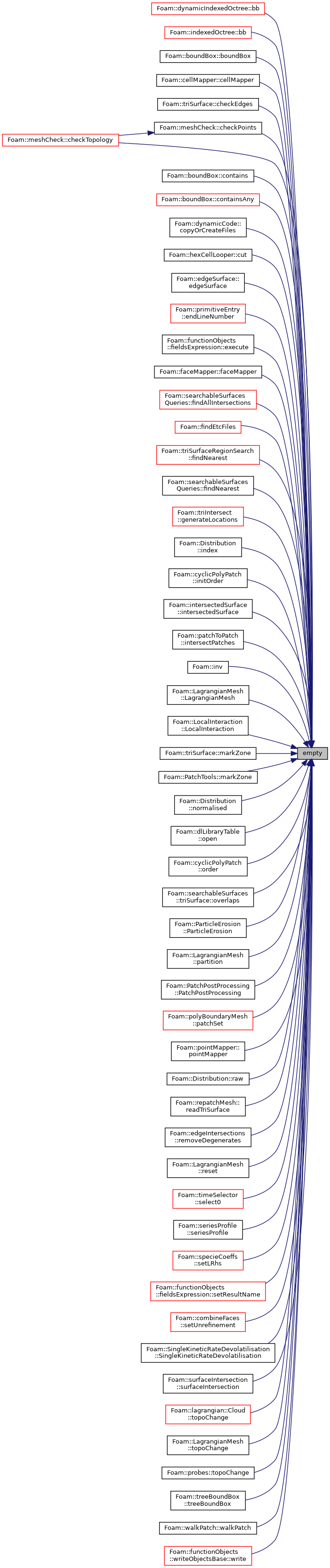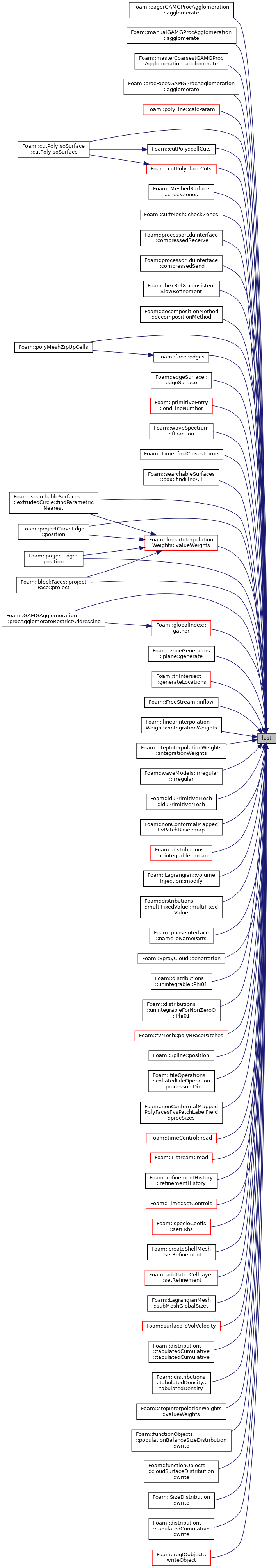 Referenced by dynamicIndexedOctree< Type >::bb(), indexedOctree< Type >::bb(), boundBox::boundBox(), cellMapper::cellMapper(), triSurface::checkEdges(), Foam::meshCheck::checkPoints(), Foam::meshCheck::checkTopology(), boundBox::contains(), boundBox::containsAny(), dynamicCode::copyOrCreateFiles(), hexCellLooper::cut(), edgeSurface::edgeSurface(), primitiveEntry::endLineNumber(), fieldsExpression::execute(), faceMapper::faceMapper(), searchableSurfacesQueries::findAllIntersections(), Foam::findEtcFiles(), triSurfaceRegionSearch::findNearest(), searchableSurfacesQueries::findNearest(), Foam::triIntersect::generateLocations(), Distribution< Type >::index(), cyclicPolyPatch::initOrder(), intersectedSurface::intersectedSurface(), patchToPatch::intersectPatches(), Foam::inv(), LagrangianMesh::LagrangianMesh(), LocalInteraction< CloudType >::LocalInteraction(), triSurface::markZone(), PatchTools::markZone(), Distribution< Type >::normalised(), dlLibraryTable::open(), cyclicPolyPatch::order(), triSurface::overlaps(), ParticleErosion< CloudType >::ParticleErosion(), LagrangianMesh::partition(), PatchPostProcessing< CloudType >::PatchPostProcessing(), polyBoundaryMesh::patchSet(), pointMapper::pointMapper(), Distribution< Type >::raw(), repatchMesh::readTriSurface(), edgeIntersections::removeDegenerates(), LagrangianMesh::reset(), timeSelector::select0(), seriesProfile::seriesProfile(), specieCoeffs::setLRhs(), fieldsExpression::setResultName(), combineFaces::setUnrefinement(), SingleKineticRateDevolatilisation< CloudType >::SingleKineticRateDevolatilisation(), surfaceIntersection::surfaceIntersection(), Cloud< ParticleType >::topoChange(), LagrangianMesh::topoChange(), probes::topoChange(), treeBoundBox::treeBoundBox(), walkPatch::walkPatch(), and writeObjectsBase::write().