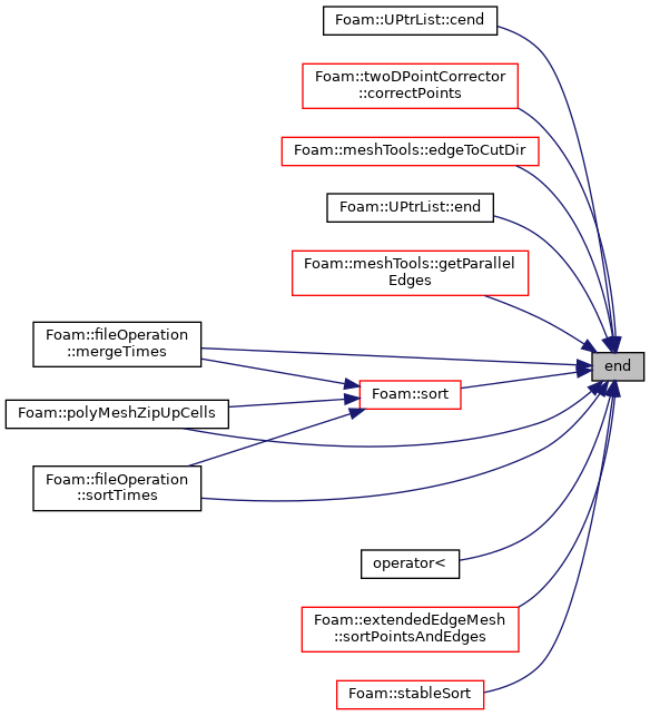 Referenced by UPtrList< T >::cend(), twoDPointCorrector::correctPoints(), Foam::meshTools::edgeToCutDir(), UPtrList< T >::end(), Foam::meshTools::getParallelEdges(), fileOperation::mergeTimes(), UList< T >::operator<(), Foam::polyMeshZipUpCells(), Foam::sort(), extendedEdgeMesh::sortPointsAndEdges(), fileOperation::sortTimes(), and Foam::stableSort().