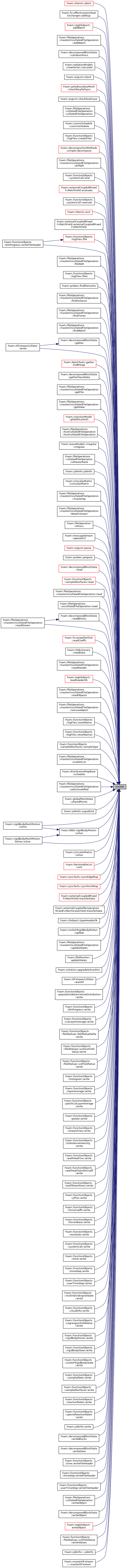 Referenced by IOerror::abort(), effectivenessHeatExchanger::addSup(), regIOobject::addWatch(), masterUncollatedFileOperation::addWatch(), decomposedBlockData::calcNumProcs(), viewFactor::calculate(), argList::check(), polyBoundaryMesh::checkParallelSync(), argList::checkRootCase(), collatedFileOperation::collatedFileOperation(), commSchedule::commSchedule(), logFiles::createFiles(), simple::decompose(), masterUncollatedFileOperation::dirPath(), systemCall::end(), externalCoupledMixedFvPatchField< Type >::evaluate(), systemCall::execute(), IOerror::exit(), externalCoupledMixedFvPatchField< Type >::externalCoupledMixedFvPatchField(), logFiles::file(), masterUncollatedFileOperation::filePath(), logFiles::files(), probes::findElements(), masterUncollatedFileOperation::findInstance(), masterUncollatedFileOperation::findTimes(), masterUncollatedFileOperation::findWatch(), decomposedBlockData::gather(), PatchTools::gatherAndMerge(), decomposedBlockData::gatherSlaveData(), masterUncollatedFileOperation::getFile(), masterUncollatedFileOperation::getState(), injectionModel::globalScalar01(), hostCollatedFileOperation::hostCollatedFileOperation(), irregular::irregular(), collatedFileOperation::isMasterRank(), jobInfo::jobInfo(), LUscalarMatrix::LUscalarMatrix(), masterUncollatedFileOperation::masterOp(), masterUncollatedFileOperation::NewIFstream(), fileOperation::nProcs(), messageStream::operator()(), argList::parse(), probes::prepare(), decomposedBlockData::read(), sampledSurfaces::read(), masterUncollatedFileOperation::read(), uncollatedFileOperation::read(), decomposedBlockData::readBlocks(), propellerDisk::readCoeffs(), IOdictionary::readData(), masterUncollatedFileOperation::readHeader(), regIOobject::readHeaderOk(), masterUncollatedFileOperation::readObjects(), masterUncollatedFileOperation::readStream(), masterUncollatedFileOperation::removeWatch(), logFiles::resetName(), logFiles::resetNames(), sampledSurfaces::sampleType(), masterUncollatedFileOperation::scatterList(), distributionMapBase::schedule(), masterUncollatedFileOperation::setUnmodified(), globalMeshData::sharedPoints(), jobInfo::signalEnd(), rigidBodyMeshMotion::solve(), rigidBodyMeshMotionSolver::solve(), rigidBodyMotion::solve(), LUscalarMatrix::solve(), ParSortableList< Type >::sort(), syncTools::syncEdgeMap(), syncTools::syncPointMap(), externalCoupledMixedFvPatchField< Type >::transferData(), externalCoupledTemperatureMixedFvPatchScalarField::transferData(), IOobject::typeHeaderOk(), sixDoFRigidBodyMotion::update(), masterUncollatedFileOperation::updateStates(), fileMonitor::updateStates(), solution::upgradeSolverDict(), OFstreamCollator::waitAll(), populationBalanceSizeDistribution::write(), bXiProgress::write(), cutLayerAverage::write(), fieldValueDelta::write(), surfaceFieldValue::write(), volFieldValue::write(), histogram::write(), layerAverage::write(), patchCutLayerAverage::write(), power::write(), streamlines::write(), turbulenceIntensity::write(), wallHeatFlux::write(), wallHeatTransferCoeff::write(), wallShearStress::write(), yPlus::write(), forceCoeffs::write(), forcesBase::write(), residuals::write(), systemCall::write(), time::write(), timeStep::write(), userTimeStep::write(), multiValveEngineState::write(), cloudInfo::write(), LagrangianFieldValue::write(), rigidBodyPoints::write(), rigidBodyState::write(), sixDoFRigidBodyState::write(), sampledSets::write(), sampledSurfaces::write(), reactionRates::write(), specieReactionRates::write(), jobInfo::write(), OFstreamCollator::write(), decomposedBlockData::writeBlocks(), decomposedBlockData::writeData(), bXiProgress::writeFileHeader(), time::writeFileHeader(), timeStep::writeFileHeader(), userTimeStep::writeFileHeader(), collatedFileOperation::writeObject(), decomposedBlockData::writeObject(), regIOobject::writeObject(), volFieldValue::writeValues(), jobInfo::~jobInfo(), and masterOFstream::~masterOFstream().