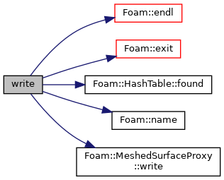 References Foam::endl(), Foam::exit(), Foam::FatalError, FatalErrorInFunction, HashTable< T, Key, Hash >::found(), InfoInFunction, Foam::name(), Foam::nl, and MeshedSurfaceProxy< Face >::write().