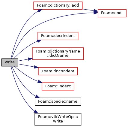 References dictionary::add(), token::BEGIN_BLOCK, Foam::decrIndent(), dict, dictionaryName::dictName(), token::END_BLOCK, Foam::endl(), Foam::incrIndent(), Foam::indent(), specie::name(), Foam::nl, and Foam::vtkWriteOps::write().