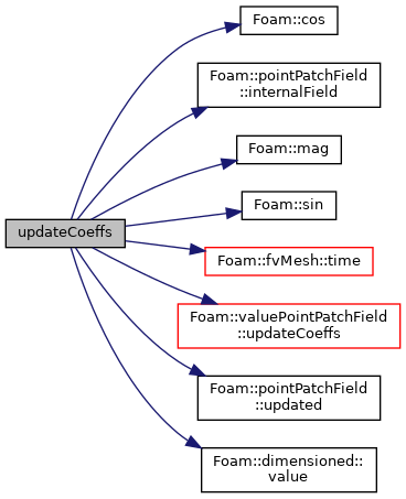 References Foam::cos(), pointPatchField< Type >::internalField(), Foam::mag(), mesh, Field< vector >::operator, Foam::sin(), fvMesh::time(), valuePointPatchField< Type >::updateCoeffs(), pointPatchField< Type >::updated(), and dimensioned< Type >::value().