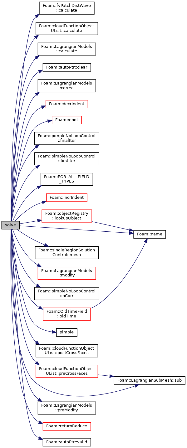 References Foam::fvPatchDistWave::calculate(), cloudFunctionObjectUList::calculate(), LagrangianModels::calculate(), autoPtr< T >::clear(), Foam::complete, LagrangianModels::correct(), Foam::decrIndent(), Foam::dimless, Foam::dimTime, Foam::endl(), EVAL_TYPE_DERIVED_PATCH_FIELDS, pimpleNoLoopControl::finalIter(), pimpleNoLoopControl::firstIter(), Foam::FOR_ALL_FIELD_TYPES(), forAll, LagrangianMesh::fractionName, Foam::inCell, Foam::incrIndent(), Foam::Info, Foam::inInternalMesh, objectRegistry::lookupObject(), singleRegionSolutionControl::mesh(), mesh, LagrangianModels::modify(), Foam::name(), pimpleNoLoopControl::nCorr(), OldTimeField< FieldType >::oldTime(), Foam::onPatchZero, patchi, pimple(), cloudFunctionObjectUList::postCrossFaces(), cloudFunctionObjectUList::preCrossFaces(), LagrangianModels::preModify(), Foam::returnReduce(), LagrangianSubMesh::sub(), and autoPtr< T >::valid().