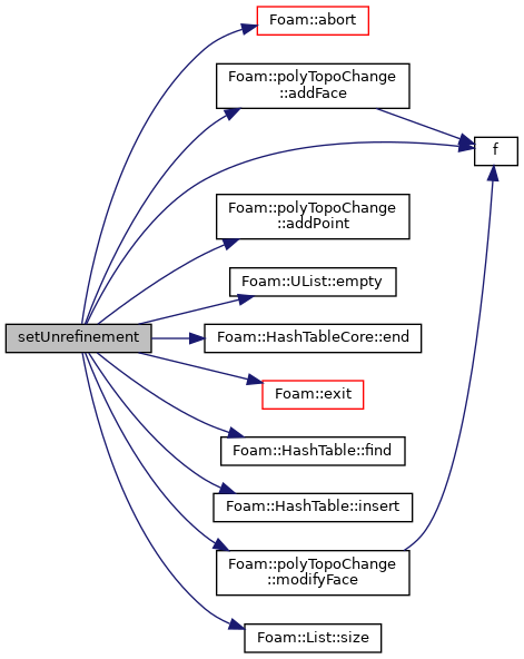 References Foam::abort(), polyTopoChange::addFace(), polyTopoChange::addPoint(), UList< T >::empty(), HashTableCore::end(), Foam::exit(), f(), Foam::FatalError, FatalErrorInFunction, HashTable< T, Key, Hash >::find(), forAll, HashTable< T, Key, Hash >::insert(), polyTopoChange::modifyFace(), patchi, and List< T >::size().