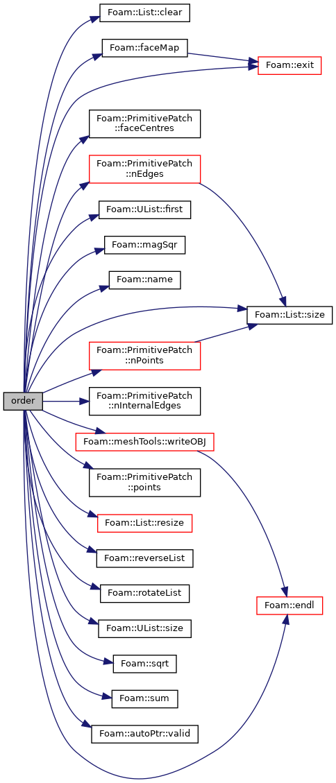 References List< T >::clear(), Foam::endl(), Foam::exit(), PrimitivePatch< FaceList, PointField >::faceCentres(), Foam::faceMap(), Foam::FatalError, FatalErrorInFunction, UList< T >::first(), forAll, Foam::magSqr(), Foam::name(), PrimitivePatch< FaceList, PointField >::nEdges(), PrimitivePatch< FaceList, PointField >::nInternalEdges(), Foam::nl, PrimitivePatch< FaceList, PointField >::nPoints(), PrimitivePatch< FaceList, PointField >::points(), Foam::Pout, List< T >::resize(), Foam::reverseList(), Foam::rotateList(), coupledPolyPatch::ownToNbrOrderData::seedFacePoints, SeriousErrorInFunction, UList< T >::size(), List< T >::size(), Foam::sqrt(), Foam::sum(), autoPtr< T >::valid(), and Foam::meshTools::writeOBJ().