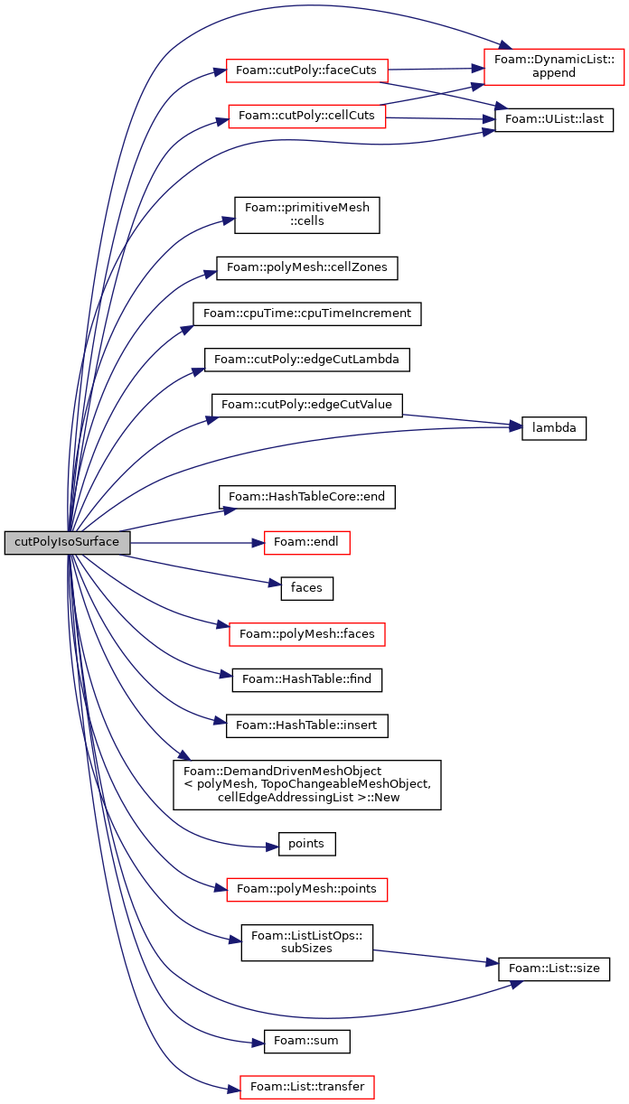 References DynamicList< T, SizeInc, SizeMult, SizeDiv >::append(), Foam::cutPoly::cellCuts(), primitiveMesh::cells(), polyMesh::cellZones(), cpuTime::cpuTimeIncrement(), Foam::e, Foam::cutPoly::edgeCutLambda(), Foam::cutPoly::edgeCutValue(), HashTableCore::end(), Foam::endl(), Foam::cutPoly::faceCuts(), cutPolyIsoSurface::faces(), polyMesh::faces(), HashTable< T, Key, Hash >::find(), forAll, HashTable< T, Key, Hash >::insert(), lambda(), UList< T >::last(), mesh, DemandDrivenMeshObject< polyMesh, TopoChangeableMeshObject, cellEdgeAddressingList >::New(), Foam::nl, word::null, cutPolyIsoSurface::points(), polyMesh::points(), Foam::Pout, List< T >::size(), Foam::ListListOps::subSizes(), Foam::sum(), and List< T >::transfer().