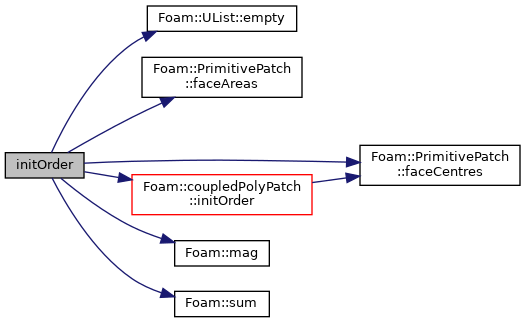 References UList< T >::empty(), PrimitivePatch< FaceList, PointField >::faceAreas(), PrimitivePatch< FaceList, PointField >::faceCentres(), coupledPolyPatch::initOrder(), Foam::mag(), and Foam::sum().