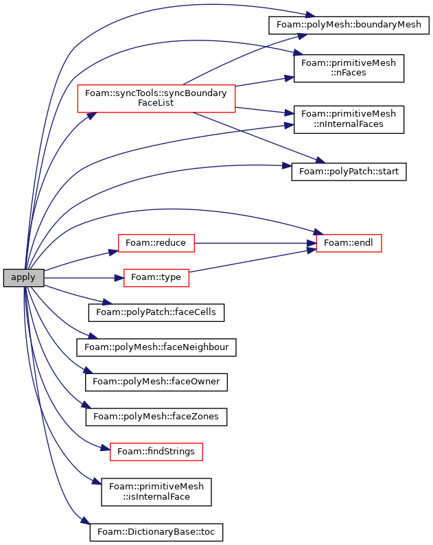 References Foam::endl(), polyMesh::faceZones(), Foam::findStrings(), forAll, Foam::Info, mesh, primitiveMesh::nFaces(), Foam::reduce(), List< T >::setSize(), syncTools::syncFaceList(), DictionaryBase< IDLListType, T >::toc(), and Foam::type().