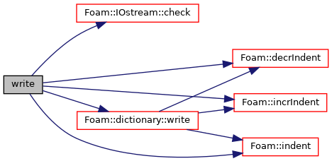 References token::BEGIN_LIST, IOstream::check(), Foam::decrIndent(), token::END_LIST, Foam::incrIndent(), Foam::indent(), Foam::nl, token::SPACE, and dictionary::write().