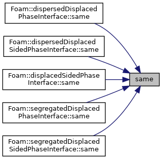 Referenced by dispersedDisplacedPhaseInterface::same(), dispersedDisplacedSidedPhaseInterface::same(), displacedSidedPhaseInterface::same(), segregatedDisplacedPhaseInterface::same(), and segregatedDisplacedSidedPhaseInterface::same().