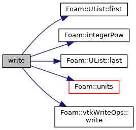 References UList< T >::first(), forAll, Foam::integerPow(), UList< T >::last(), Foam::unitAny, Foam::units(), and Foam::vtkWriteOps::write().